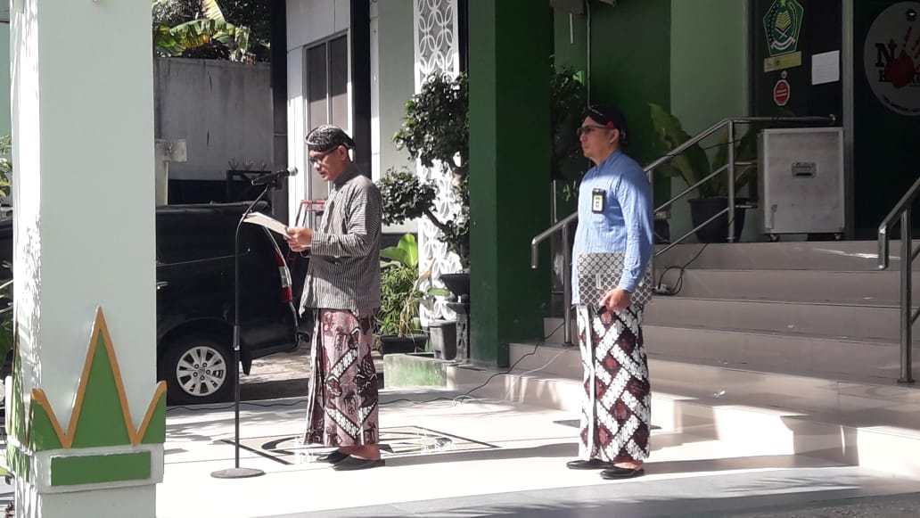 Yogyakarta (Humas) Dalam rangka menindaklanjuti SE Menteri Agama No. 30 Tahun 2022 tentang Pelaksanaan Upacara Hari Sumpah Pemuda ke 94 tahun 2022 pada Kementerian Agama , Kantor Kementerian Agama Kota Yogyakarta melaksanakan Upacara dalam rangka memperingati Hari Sumpah Pemuda, Jumat 28 Oktober 2022 di Halaman Kantor, diikuti oleh seluruh ASN dan Pejabat Struktural di Lingkungan Kankemenag Kota Yogyakarta dengan memakai pakaian adat nasional.