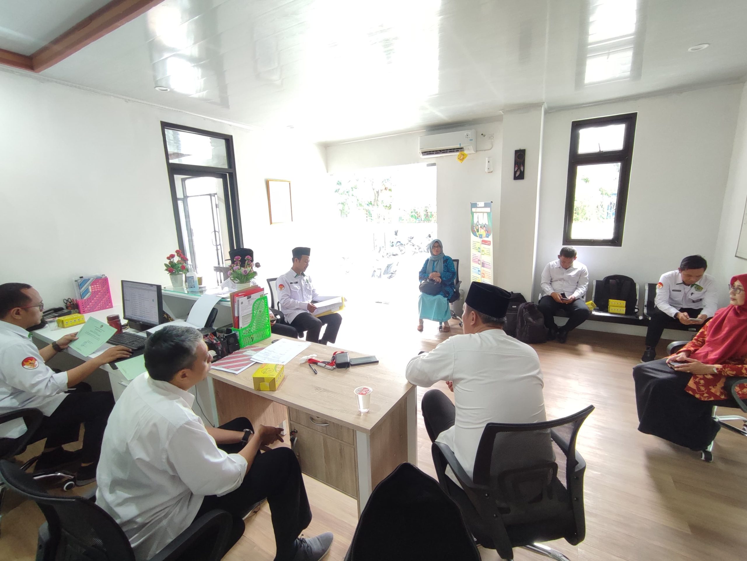 Yogyakarta ( Bimas Islam) : Kasi Bimas Islam Saeful Anwar, S. Ag., M. S. I. Menugaskan Tim monev triwulan lll: Imam Muhtarom, H. Dhewan Suprayoga, M. Arif Wahyudi, Andri Wahyu Sukmono, Muhammad Nasrudin, dan Prayitno pada hari selasa, 8 Oktober 2024 ke KUA Jetis beralamat Jalan Cokrokusuman 786 Jetis Yogyakarta.