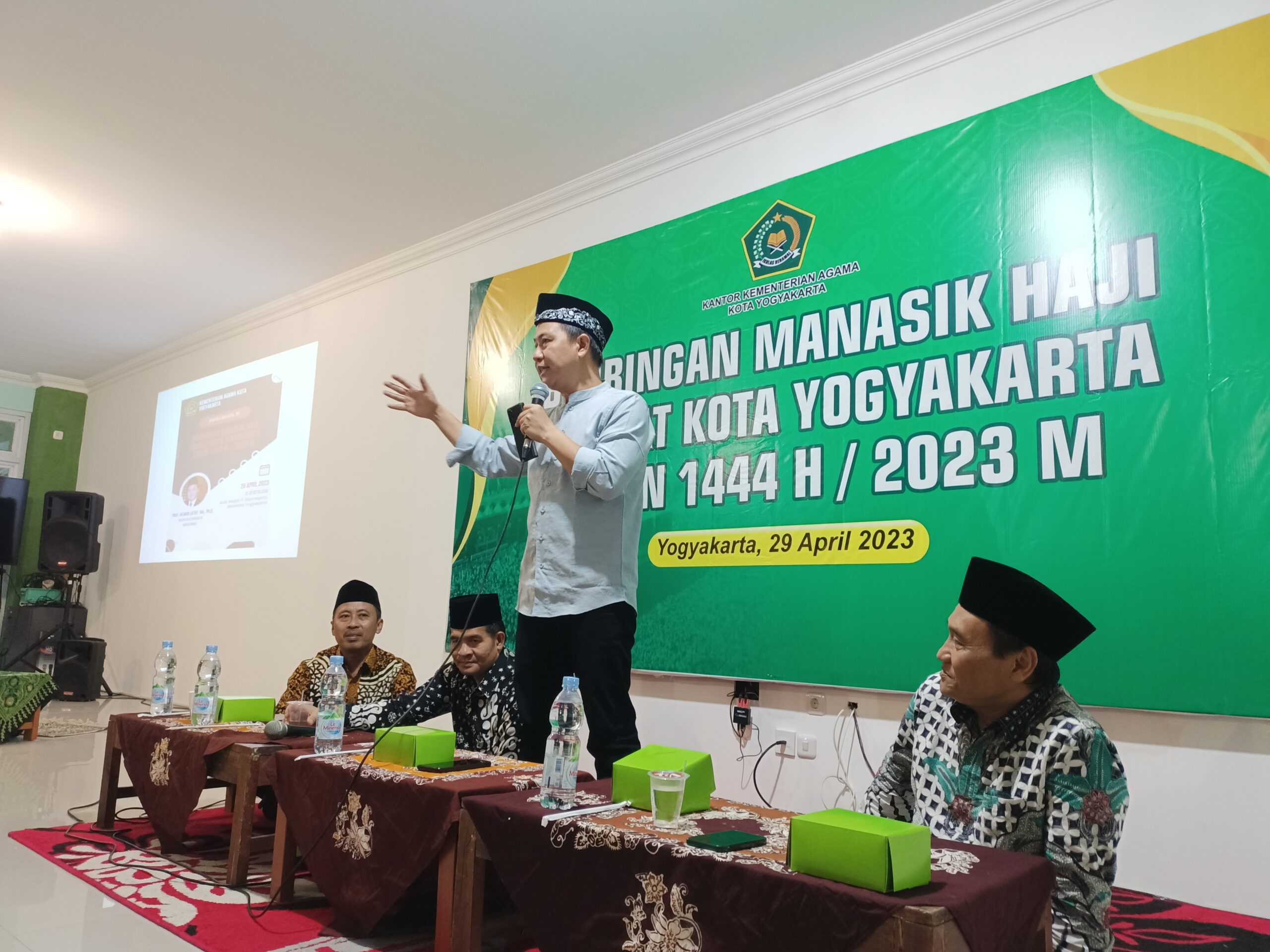 Kegiatan Manasik Haji tingkat Kota Yogyakarta ini merupakan putaran kedua. Turut hadir dalam kegiatan tersebut, Kepala Bidang PHU Kanwil Kemenag DIY, Audi Johansyah, M.M., Kasi PHU Kota Yogyakarta, M. Tahrir, M.M. [Eko]