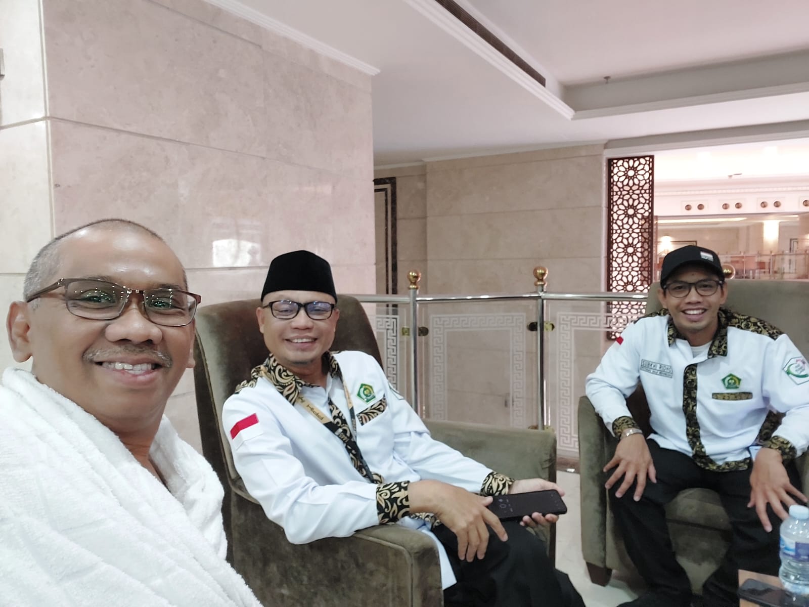 Makkah – Direktur Layanan Haji Luar Negeri, Ditjen PHU Kemenag RI, Subkhan Cholid, kunjungi calon jamaah haji Kota Yogyakarta, Ahad 26/5/2024 di hotel Syafwat Al Shorouk/508. Kunjungan selain silaturrahmi juga memastikan jamaah mendapatkan layanan yang terbaik dari petugas dan pihak hotel.