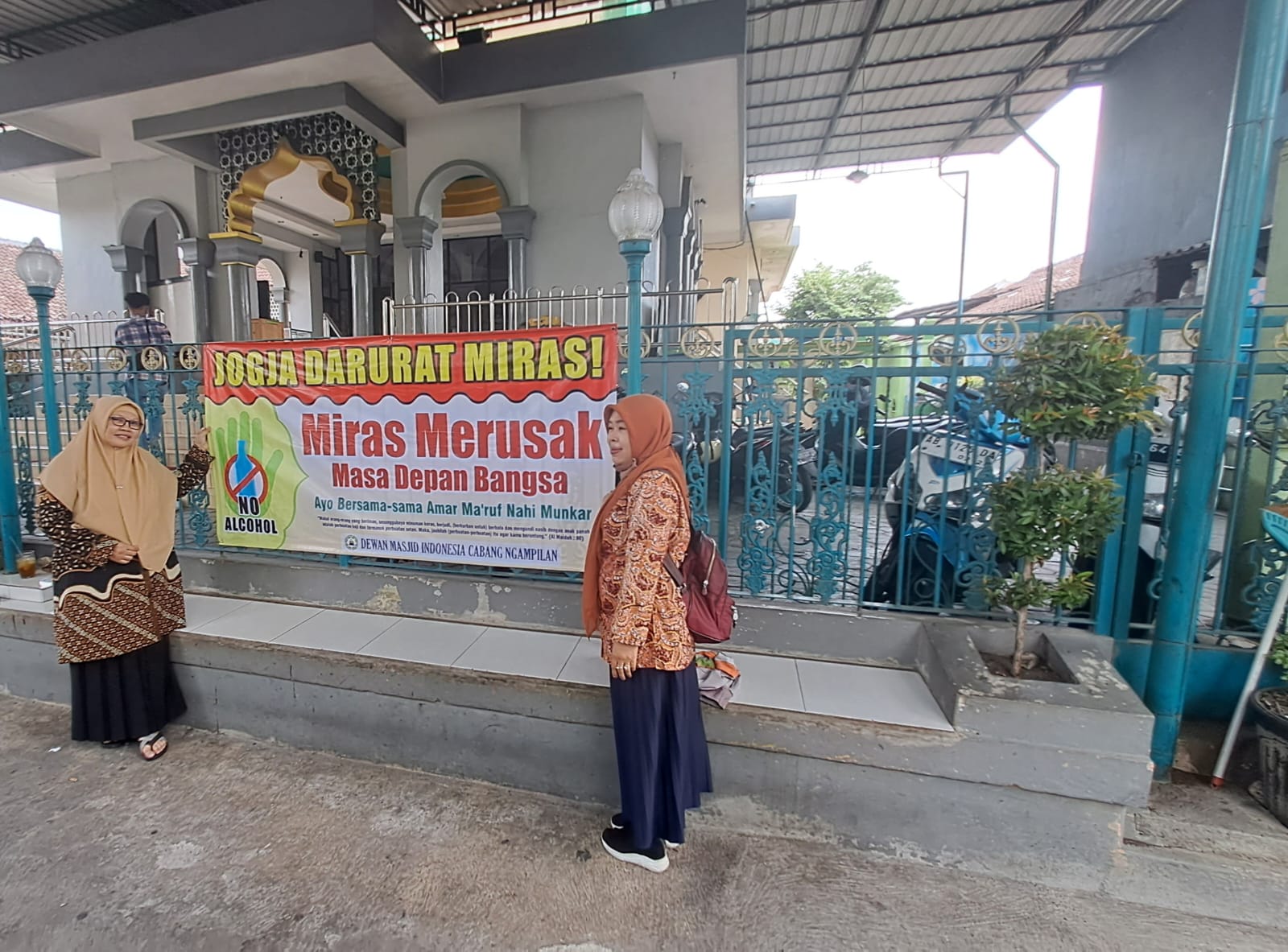 Yogyakarta(KUA Ngampilan) Ketua Dewan Masjid (DMI) Cabang Ngampilan, H Khaedar Waluyo SAg, mengkoordinir dan memfasilitasi pemasangan banner tolak miras untuk Masjid se Kemantren Ngampilan mulai awal Oktober 2024.Berawal dari keprihatinan saat ini menjamurnya outlet minuman keras(Miras) mengancam generasi muda maupun masyarakat umum dengan efek yang tidak baik,akibat konsumsi miras akan menimbulkan kejahatan lainnya.Dengan terbitnya Pernyataan Sikap Pimpinan Wilayah Muhammadiyah,Pengurus Wilayah Nahdhatul Uama dan Majelis Ulama Indonesia Daerah Istimewa Yogyakarta yang salah satunya menolak bebasnya berdirinya Toko Miras di DIY.Salah satu dampak buruk atas mudahnya membeli minuman keras bagi pelajar sekolah.Membeli miras di DIY semudah membeli es di angkringan.Surat pernyataan bersama ditandatangani pada tanggal 20 September 2024 oleh tiga pimpinan masing-masing organisasi ; Dr.Muh.Ikhwan Ahada,S.Ag,M.A,(Ketua PWM DIY),Prof.Dr.H.Machasin,M.A(Ketua MUI DIY),Dr.H.Ahmad Zuhdi Muhdlor,S.H, M.Hum(Ketua Tanfidziyah,Pengurus Wilayah NU DIY).Ditempat terpisah Kepala KUA Ngampilqn,Muhamad Sahidin,S.Ag,M.Si, sangat mendukung dan mengapresiasi kegiatan DMI Ngampilan termasuk dalam wakti dekat akan dilaksanakan Pengajian Akbar ,Sabtu,12/10/2024 dan Pembinaan Remaja Masjid Sabtu ,19/10/2024.(Janti)