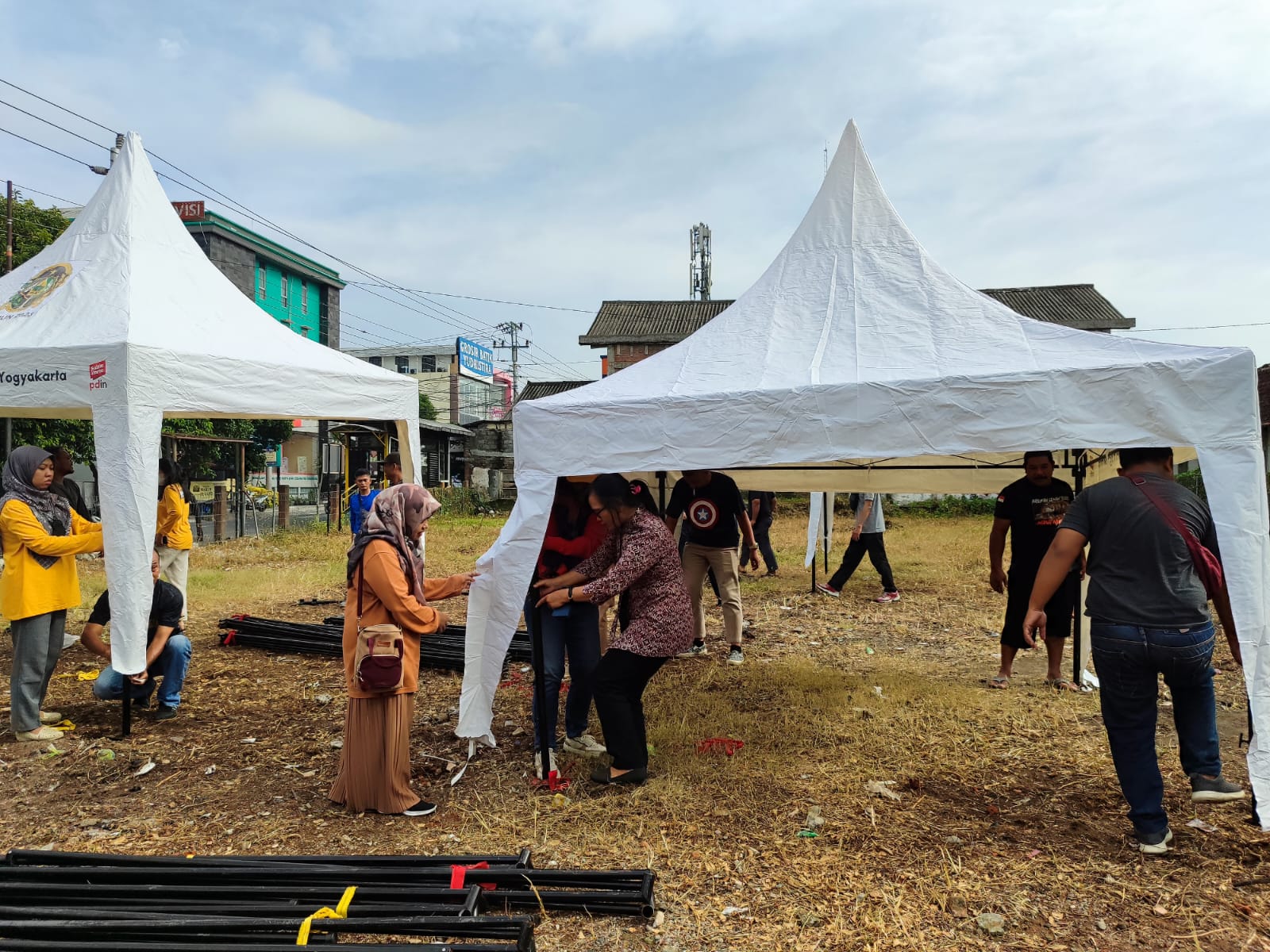Yogyakarta (KUA Mergangsan) Jum’at, 08/03/2024 segenap Forkompimtren Mergangsan berkolaborasi untuk mempersiapkan tempat Bazar UMKM Pasar Ramadhan yang berada di Jln. Tamansiswa 103, Wirogunan, Mergangsan, Yogyakarta, dengan mendirikan tenda-tenda yang akan digunakan sebagai tempat untuk menjual produk makanan. Baik makanan hidangan untuk berbuka puasa ataupun makanan yang bisa dikonsumsi pada saat makan sahur.