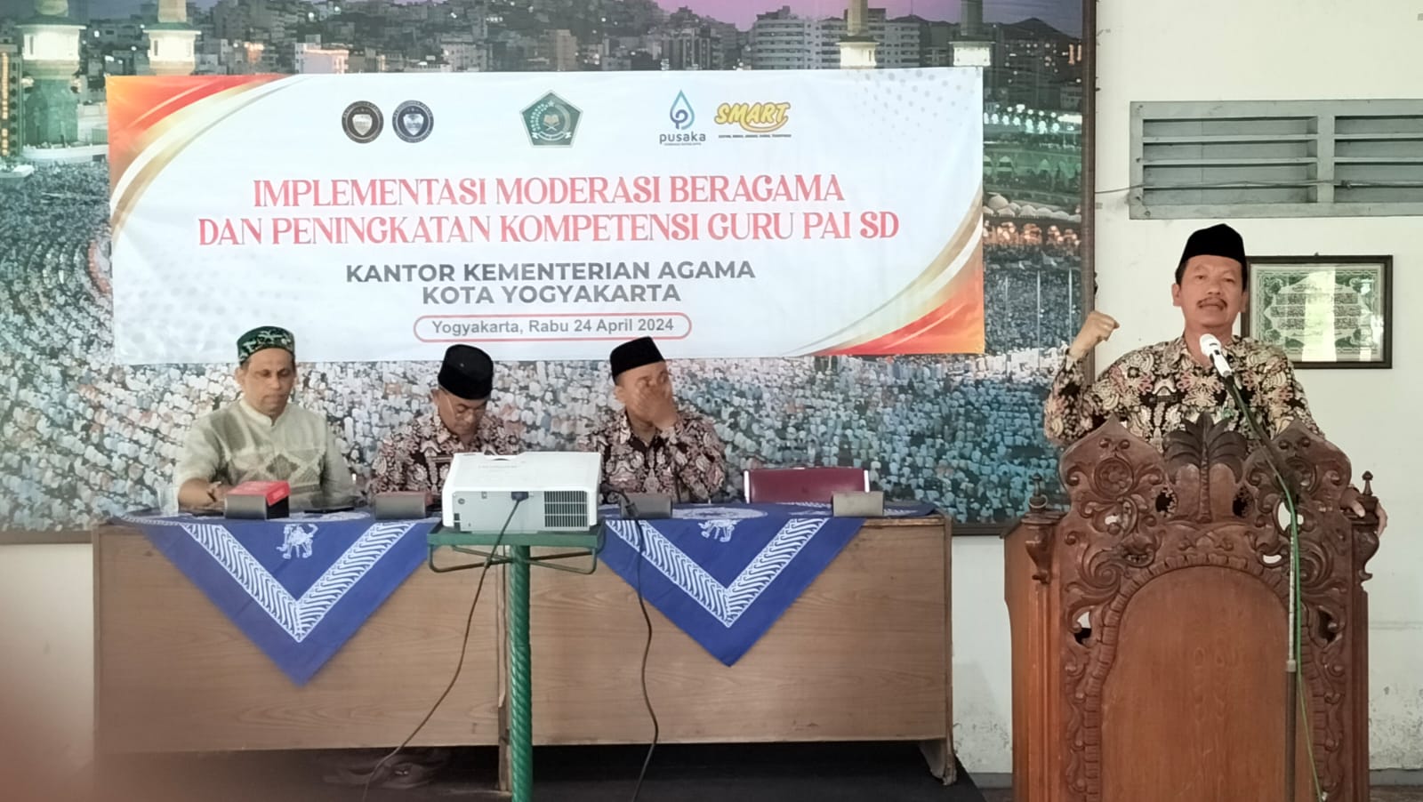Yogyakarta (PAIS) Seksi Pendidikan Agama Islam bekerjasama dengan KKG PAI SD se Kota Yogyakarta melaksanakan Kegiatan Implementasi Moderasi Beragama dan Peningkatan Kompetensi Bagi Guru PAI Jenjang SD, hari ini Rabu 24 April 2024 bertempat di Gedung PDHI Kotagede Jln. Ki Pembayun no 04 yang diikuti sebanyak 200 Peserta terdiri dari guru Pendidikan Agama Islam jenjang SD dan dihadiri oleh Kepala Bidang Pakis DIY H. Mukotip, S. Ag.,M.Pd.I, Ketua Tim Kerja PAIS Bidang Pakis H. Edy Purwanto, S. Ag.,M.Pd.Si, Kepala Kantor Kemenag Kota Yogyakarta H. Nadhif, S. Ag.,M.S.I, Kasi PAIS H. Fariq Nur Rokhim, S. H.I., MA serta Pengawas Pendidikan Agama Islam.