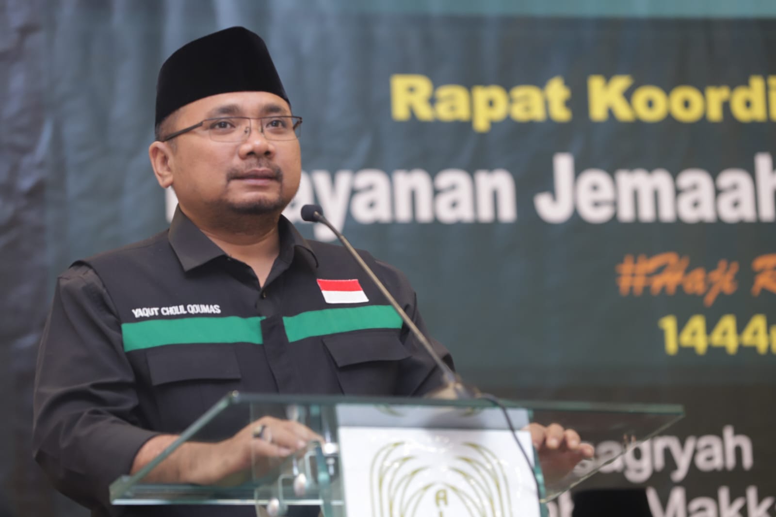 “Kalau sebelumnya jatah Zamzam hanya 5 liter, tahun ini kita putuskan menambahkan 5 liter Zamzam untuk jemaah haji dan petugas,” terang Menag Yaqut diikuti teriakan alhamdulillah dari para jemaah, di Syisyah-Makkah, Senin (3/7/2023).
