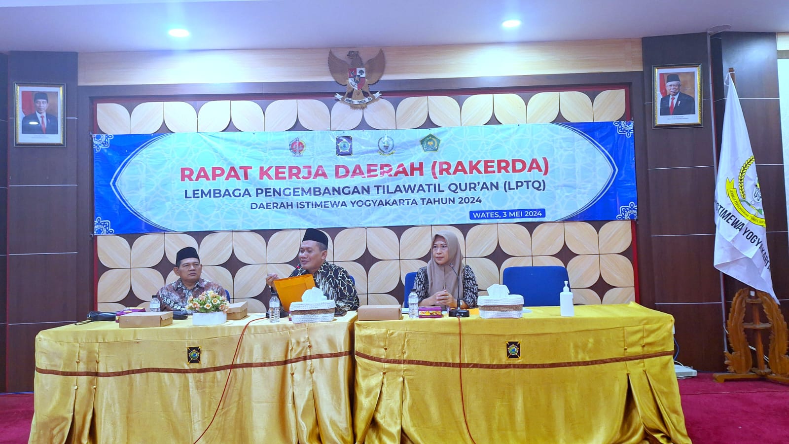 Yogyakarta (Humas)-Kepala Seksi Bimas Islam Kankemenag Kota Yogyakarta Saeful Anwar, S.Ag.,MSI mengikuti Rapat Kerja Daerah (Rakerda) LPTQ DIY 2024. Rakerda LPTQ DIY dilaksanakan pada Jum’at, 03/05/2024 bertempat di Ruang Rapat Sermo, Gedung Binangun I Lantai 2 Komplek Pemkab Kulonprogo. Selain Saeful, ikut hadir sebagai peserta Rakerda dari Kota Yogyakarta antara lain Hibnu Basuki, MM dari Bagian Kesra Pemkot Yogyakarta, Alifana Indrianti dan Supartiningsih dari Bimas Islam Kankemenag Kota Yogyakarta.