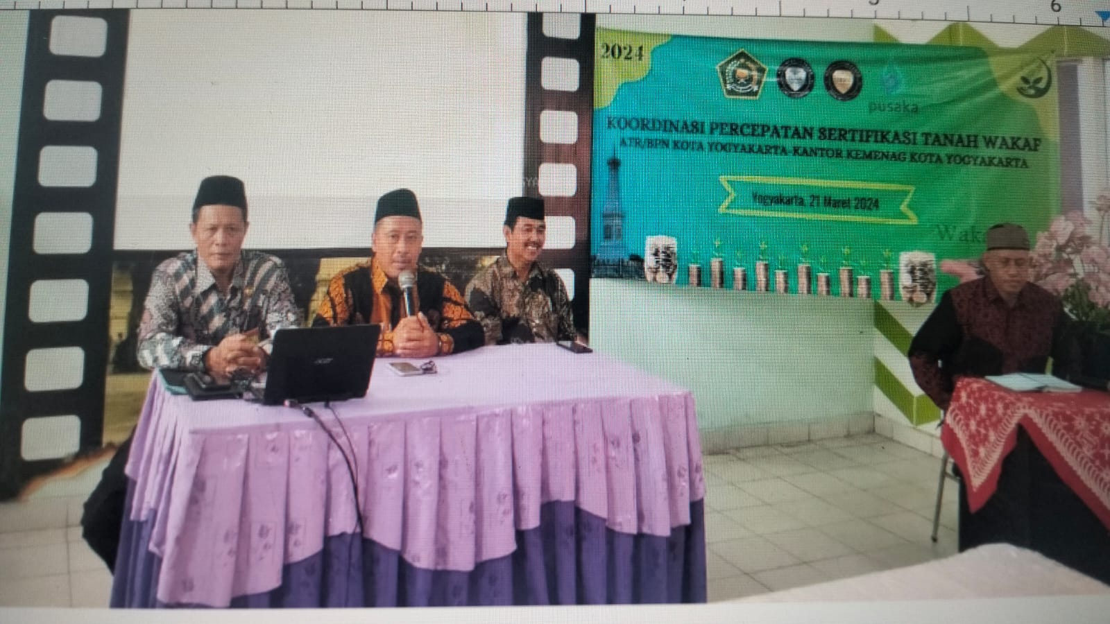 Yogyakarta (MAN 2 Yogyakarta) – Kepala Kantor Kementerian Agama Kota Yogyakarta H. Nadhif,SAg, MSI membuka kegiatan koordinasi Percepatan Sertifikasi Tanah Wakaf antara BPN kota Yogyakarta di ruang Broadcasting, MAN 2 Yogyakarta, Kamis (21/03/2024). Hadir pada acara ini, Kepala MAN 2 Yogyakarta, Singgih Sampurno, S.Pd, MA, unsur Kantor Urusan Agama (KUA), Nadhatul Ulama (NU), dan Muhammadiyah. Acara digelar sebagai implemtasi mandatori sekaligus mengawal kebijakan Kemenag Republik Indonesia. Sertifikasi Tanah Wakaf merupakan salah satu program unggulan Kemenag RI.