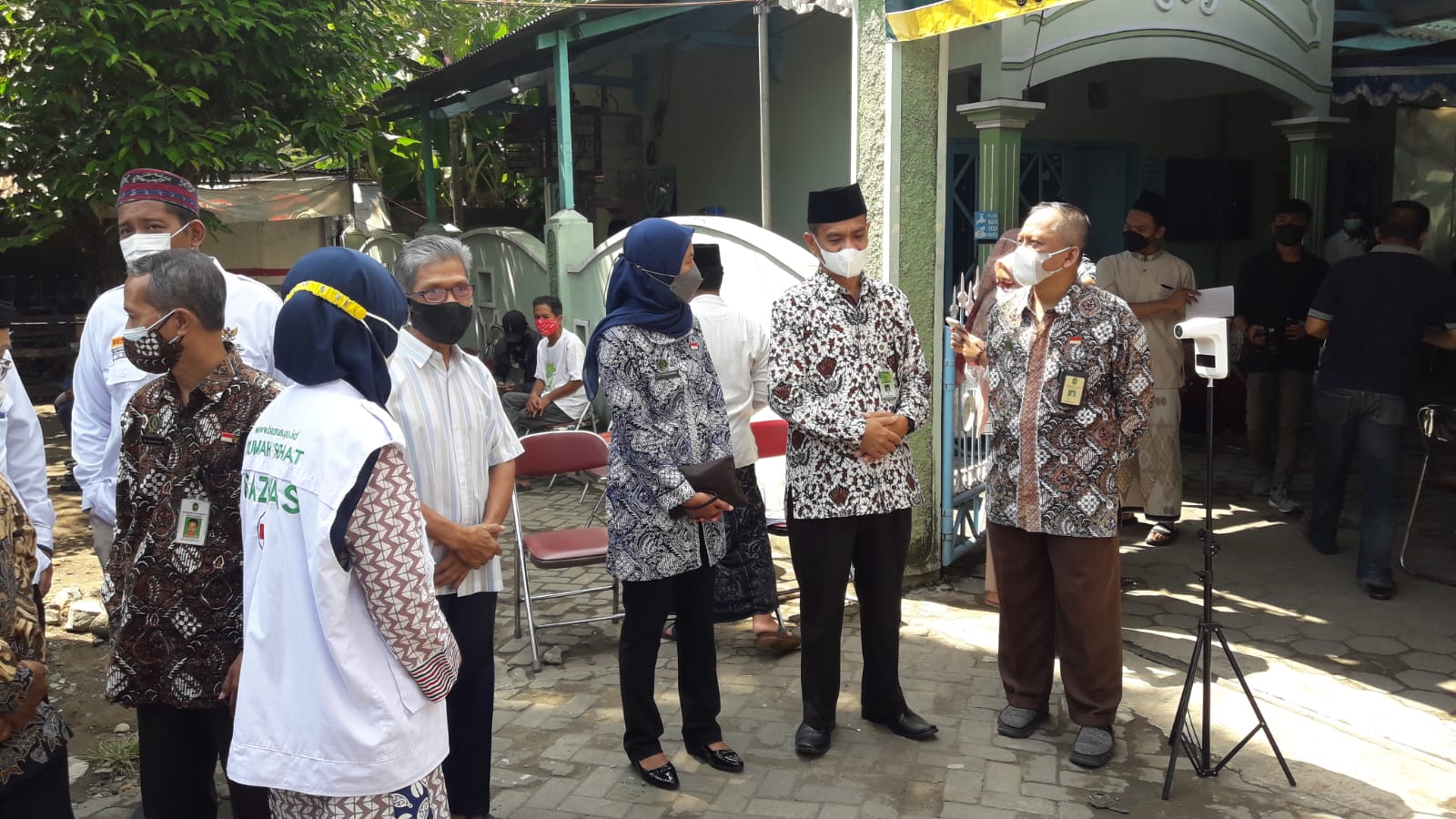 Yogyakarta (Kankenenag) – Bertempat di Ponpes Luqmaniyah Umbulharjo Yogyakarta, Kamis (16/9) Kepala Kantor Kemenag Kota Yogyakarta Drs. H. Nur Abadi, MA beserta kasi PD Pontren Drs. H. Bambang Inanta pantau Program Vaksinasi Kyai dan Santri dari Baznas Kota Yogyakarta sebanyak 412 santri dan masyarakat yang sudah mendaftar vaksin.