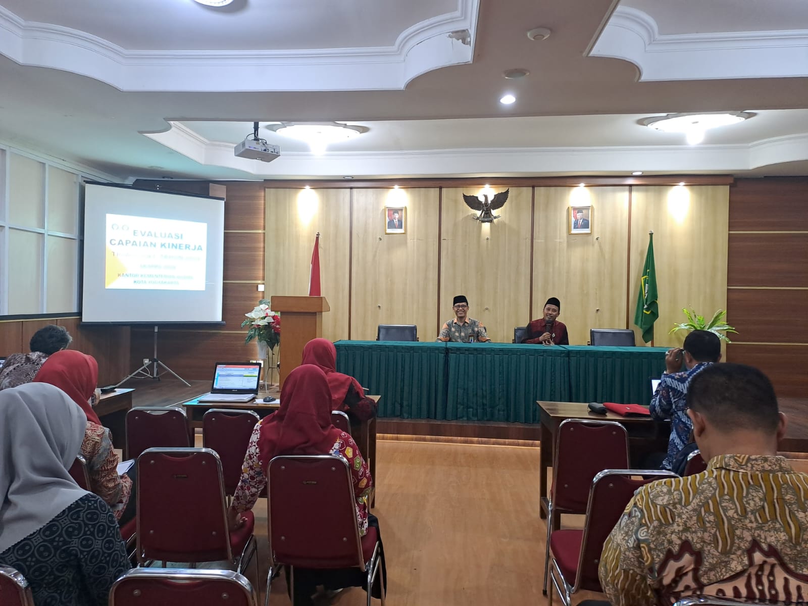 Yogyakarta (Perencana) Telah dilaksanakan kegiatan Evaluasi Capaian Kinerja Triwulan I Tahun 2024 oleh Perencana Kankemenag Kota Yogyakarta pada hari Rabu 18/04/2024 bertempat di aula 1 Kankemenag kota Yogyakarta, dengan peserta kasi/penyelenggara, Perencana, penyusun/pengelola Seksi, Keuangan dan Pengelola kegiatan Subbag TU lingkungan Kankemenag Kota Yogyakarta. Kegiatan dipandu Kasubag Tata Usaha H. Ahmad Mustafid,SAg,M.Hum.