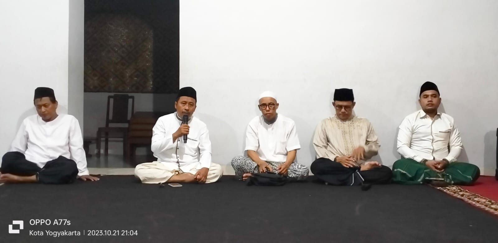 Yogyakarta (Humas) Kepala Kantor Kementerian Agama Kota Yogyakarta H. Nadhif,S.Ag., M.S.I., menyambut doa dan pembacaan sholawat Nariyah sebanyak 4444 kali yang dilaksanakan oleh PCNU Kota Yogyakarta, pada hari Sabtu 21/10/2023 bertempat dikediaman KH Sholahudin Mansyur,SAg., Namburan Kidul Kemantren Kraton Kota Yogyakarta, diikuti oleh 44 jemaah santri dan pengurus PCNU Kota Yogyakarta , ASN Kankemenag Kota Yogyakarta. Pembacaan sholawat Nariyah dipimpin DR. H. Munjahid berlangsung selama 1 jam . Ketua PC NU Yazid hadir sekaligus memberikan sambutan ucapan selamat datang. Hadir mendampingi Kepala Kantor Kemenag Kota Yogyakarta diantaranya Kasi Bimas Islam Saeful Anwar, SAg,MSI, Kasi PHU H. Mohamad Tahrir, SE,MM., Kasi Dikmad Hj. Elfa Tsuroyya,S.Pd.,M.Pd.I., Ka TU MAN Yogyakarta 1 Bahar Rozak, Kepala MIN 1 Yogyakarta Zumaroh Nazulaningsih,SPd,M.Pd.I.