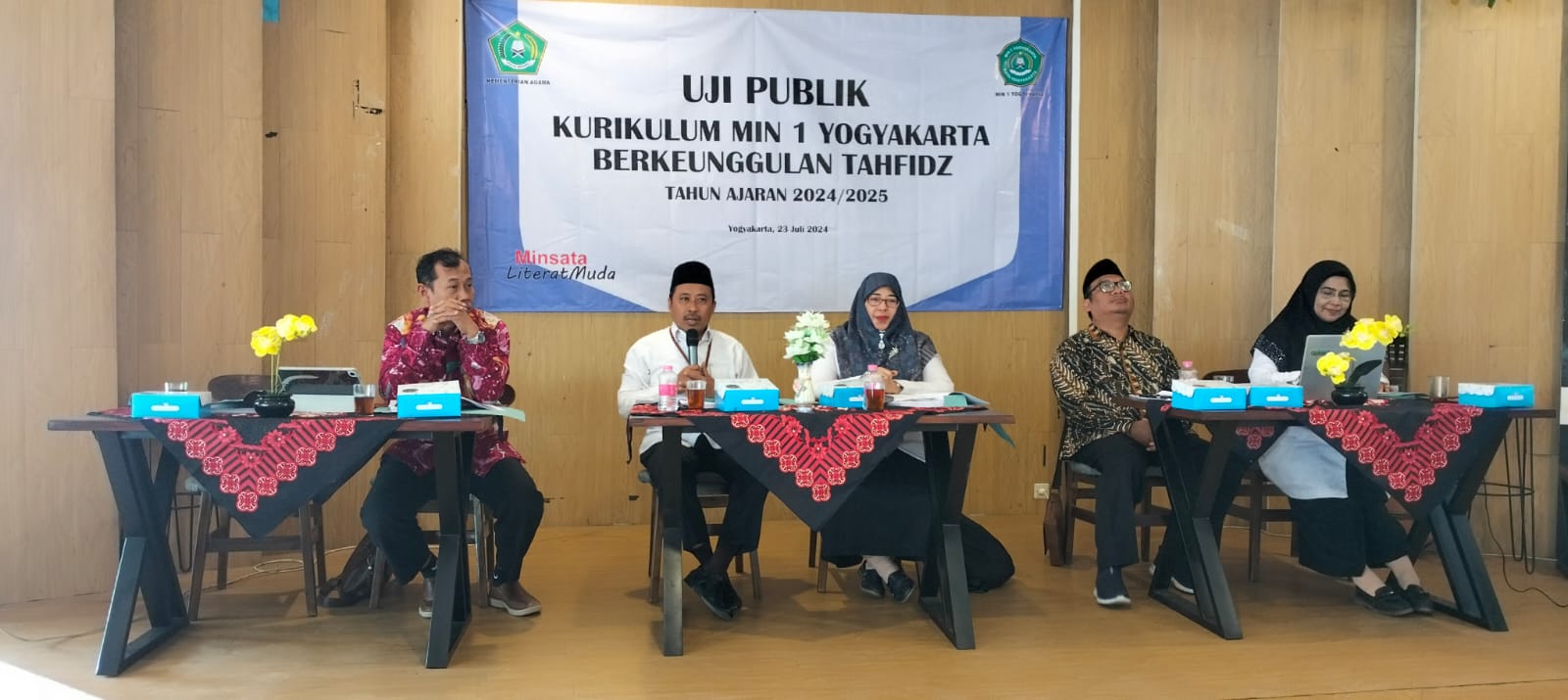 Yogyakarta ( Humas ) MIN 1 Yogyakarta menyelenggarakan kegiatan uji publik kurikulum min 1 Yogyakarta ” Berkeunggulan Tahfidz” pada hari Selasa 23/07/2024 bertempat di rumah makan Aji Saka Jl. Tegalturi No.2, Giwangan, Kec. Umbulharjo, Kota Yogyakarta. Peserta uji publik wali murid dan guru lingkungan MIN 1 Yogyakarta. Hadir Kepala Kantor Kementerian Agama Kota Yogyakarta H. Nadhif,S.Ag.,MSI memberikan sambutan sekaligus pembinaan, didampingi pengawas madrasah Hj. Ratini ,SPdI,MSI., Ketua Komite Sri Handoko.