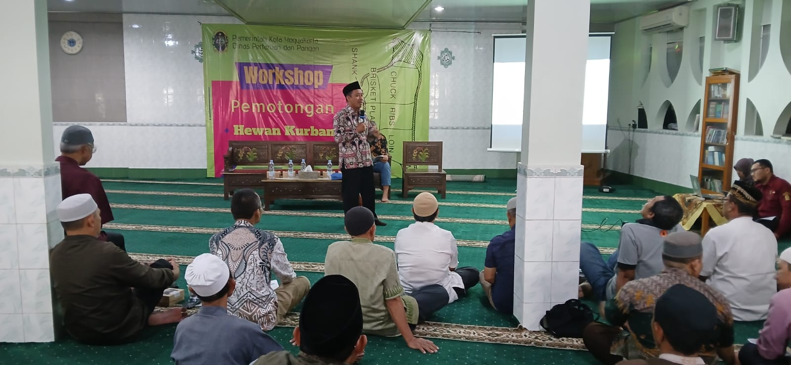 Yogyakarta (Humas) – Dinas Pertanian dan Pangan Kota Yogyakarta menggelar Workshop Pemotongan Hewan Kurban. Kegiatan berlangsung di Masjid Pangeran Diponegoro, Tegal Rejo, Rabu (5/6/2024). Hadir sebagai narasumber Kepala Kantor Kementerian Agama Kota Yogyakarta, H. Nadhif, S.Ag. M.S.I.