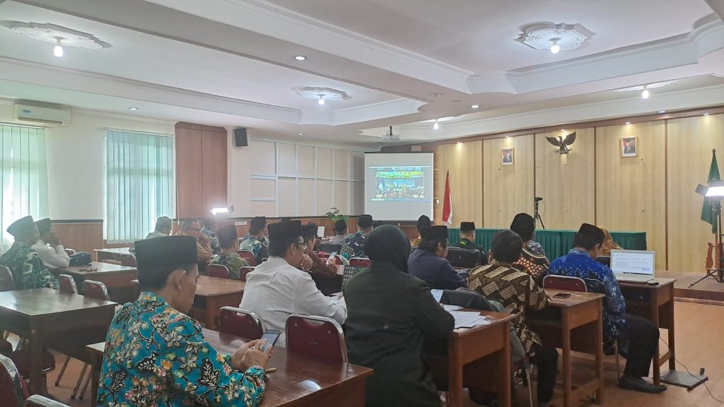 Yogyakarta (Humas) – “Semua pimpinan saya minta proaktif mengikuti kegiatan (Rakernas) sampai selesai, karena hasil raker sebagai haluan untuk menjalankan tugas setahun kedepan,” demikian ungkap Kepala Kantor Kementerian Agama Kota Yogyakarta, H. Nadhif, S.Ag. M.S.I. disela mengikuti Rakernas Kementerian Agama RI secara virtual, Senin (5/2/2024).