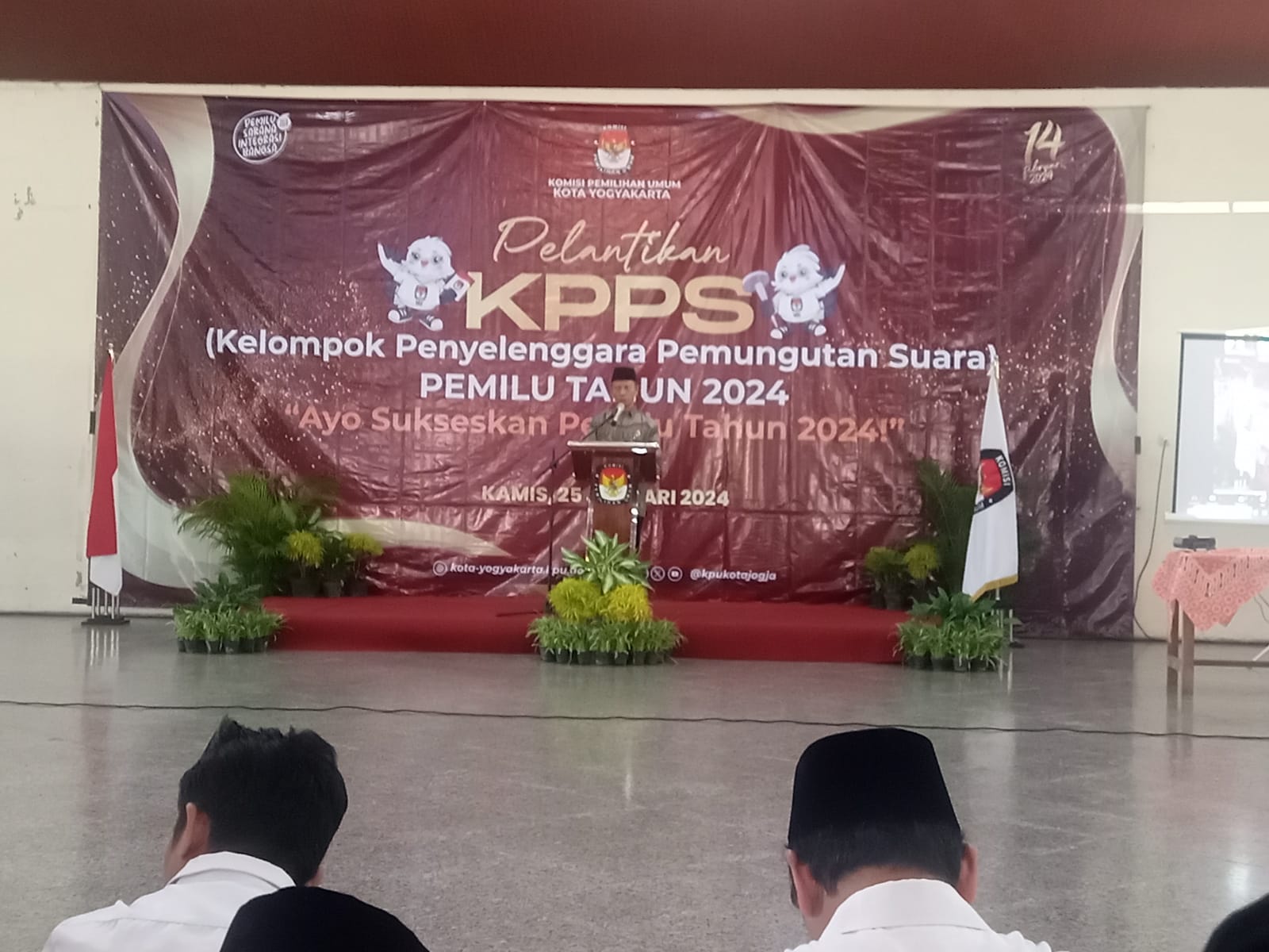 Yogyakarta ( KUA Umbulharjo) Pada hari ini Kamis, 25 Januari 2024 bertempat di Wana Bakti Yasa telah dilaksanakan pelantikan KPPS Kemantren Umbulharjo sejumlah1540 peserta KPPS dari 220 TPS yang ada di wilayah Kemantren Umbulharjo, turut hadir dalam acara tersebut adalah KPU RI, Pj. Walikota, Kapolres, Dandim, Kajari, Ketua PN, Kabag Tapem, MPP, KPU DIY