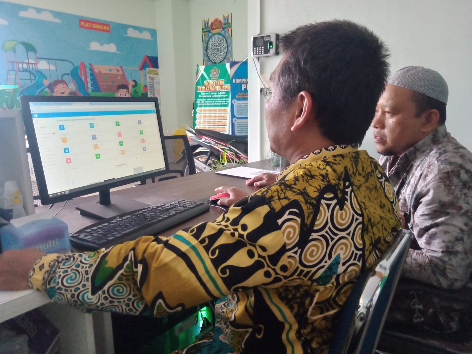 KUA Gedongtengen. Pegawai KUA bidang administrasi Danang Dwi Yantoro dan Entis Sutisna update data di aplikasi Lurik,pada hari Kamis 24/10/2024 di ruang kerja KUA Gedongtengen Jl. Letjen Suprapto No.86-A, Pringgokusuman, Gedong Tengen, Kota Yogyakarta.
