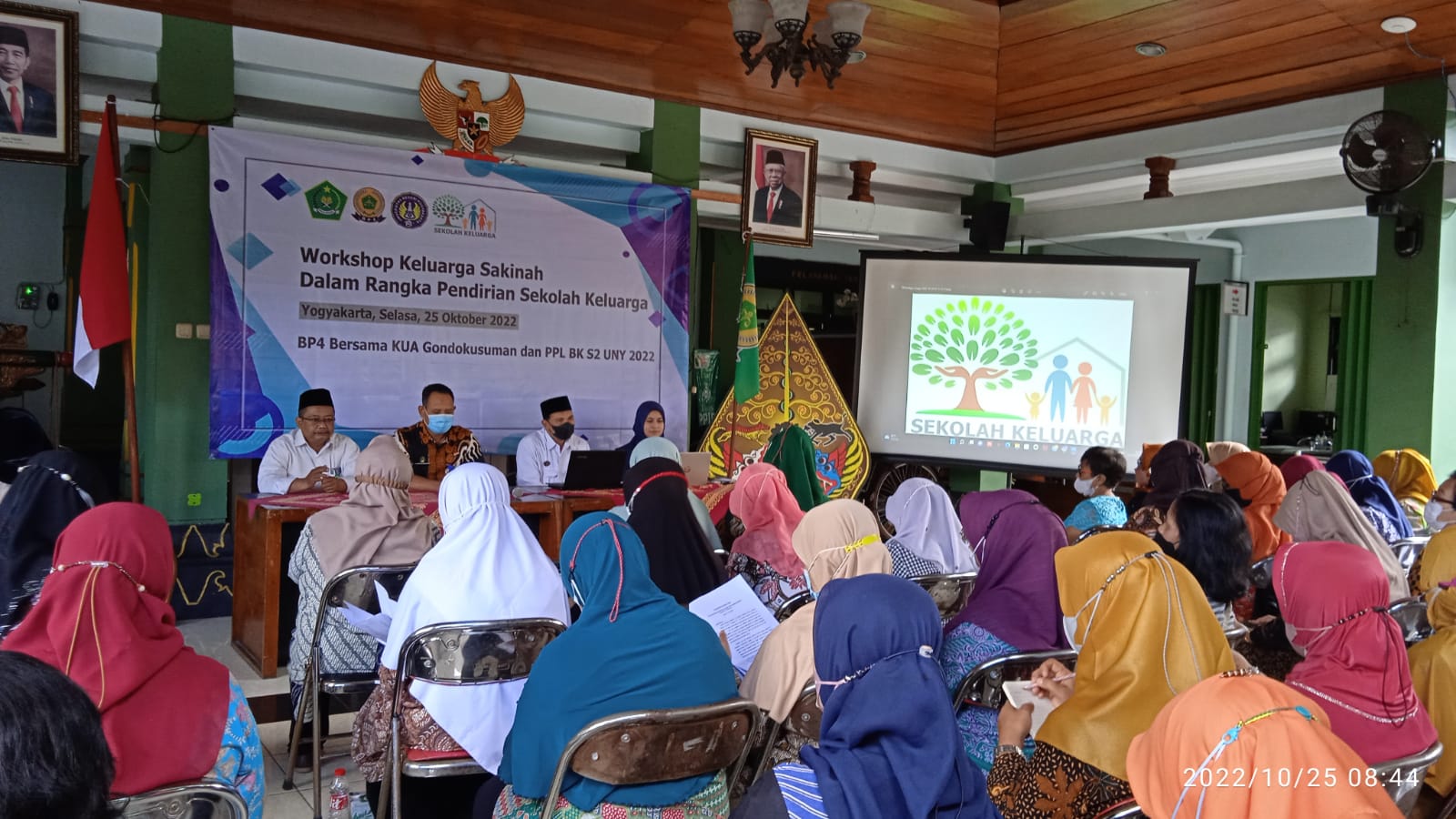 Yogyakarta (KUA Gondokusuman) – KUA Gondokusuman bekerjasama dengan Badan Penasihatan Pembinaan dan Pelestarian Perkawinan (BP4), Forum Komunikasi Pendidikan Agama Islam (FKPAI), PPL BK S2 UNY, dan PPL S1 UIN Sunan Kalijaga menggelar Workshop Keluarga Sakinah Dalam Rangka Pendirian Sekolah Keluarga. Kegiatan berlangsung Selasa, (25/10/2022) di Pendopo Kemantren Gondokusuman.