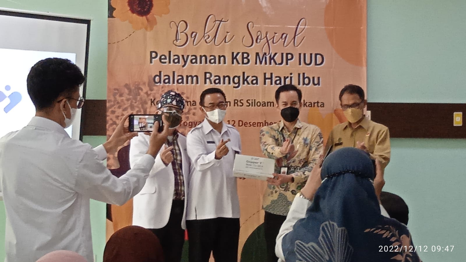 Kegiatan bakti sosial pelayanan KB secara simbolis diserahkannya alat kontrasepsi IUD dan Implan oleh Kepala DP3AP2KB Kota Yogyakarta Ir Edy Muhammad kepada Direkrut RS Siloam Yogyakarta dr. S. A. Erich Richardo, M. PH.