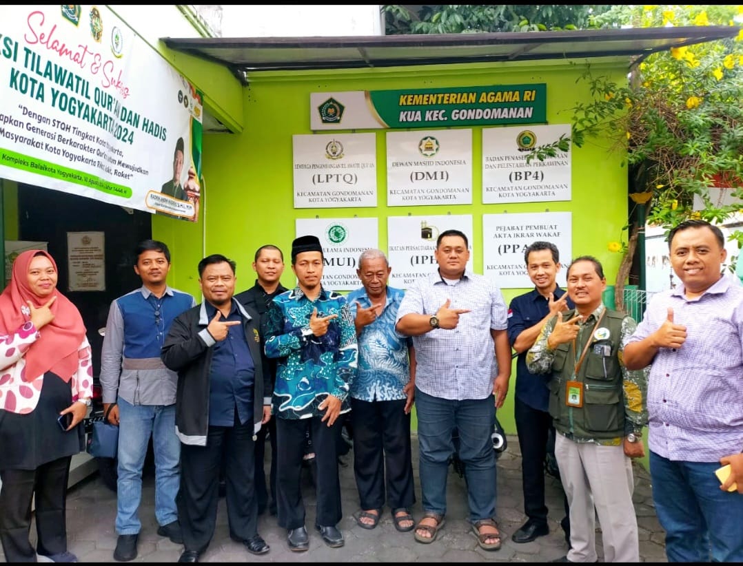 Yogyakarta (KUA Gondomanan) Kantor Urusan Agama ( KUA) Kemantren Gondomanan menerima kunjungan tim Monitoring dan Evaluasi Sarana dan Prasarana (Monev Sarpras) Kementerian Agama Republik Indonesia dan tim Polda Metro Jaya didampingi Kabid Urais Kantor Wilayah Kementerian Agama Daerah Istimewa Yogyakarta. Kamis, 22 Agustus 2024.