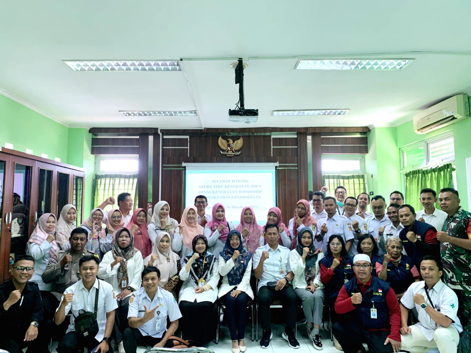 Kepala Puskesmas Gondomanan dr Fajar Meitahati beserta jajarannya, dihadiri pula Forkompimtren Gondomanan yang terdiri dari Kemantren, Polsek, Koramil, KUA, Para Inisiator kesehatan jiwa, Kader Jiwa dewasa, dan Kader jiwa remaja menerima kunjungan.