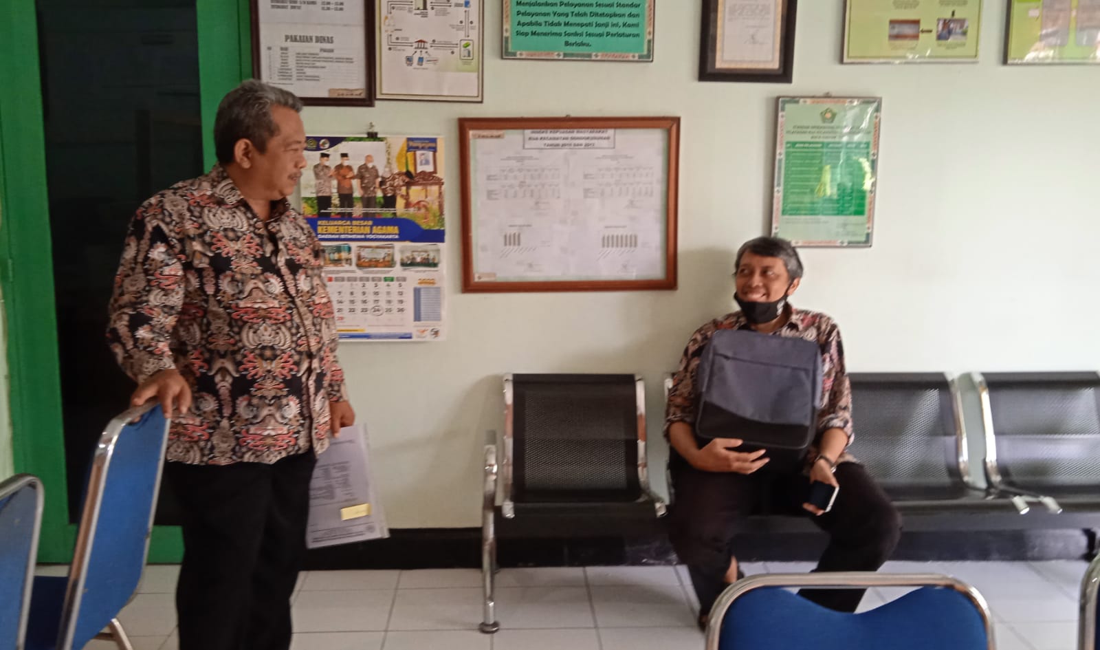 Yogyakarta (KUA Gondokusuman) – Kepala KUA Gondokusuman H. Noerohini, S. Ag., MH mendapat kunjungan Analis Kepegawaian Kantor Kementerian Agama Kota Yogyakarta Andri Wahyu Sukmono, S. E., Rabu, 23/02/2022. Wahyu, begitu sapaannya menyampaikan maksud dan tujuan kunjungannya adalah sebagai berikut: