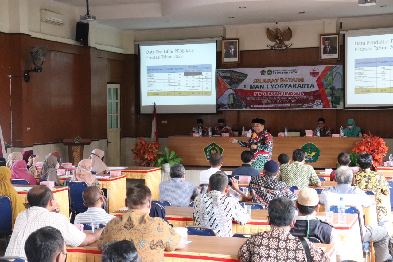 Kepala MAN 1 Yogyakarta Drs.H.Wiranto Prasetyahadi, M.Pd. dalam sambutannya menjelaskan, animo masyarakat untuk menyekolahkan putera putrinya di madrasah ini pada tiap tahunnya meningkat, tercatat ada 849 pendaftar, terdiri dari Jalur Prestasi (626 pendaftar), Jalur Undangan Non Akademik (93 pendaftar), dan Jalur Tahfidz (130). Dari jumlah tersebut, sebanyak 546 pendaftar lolos verifikasi, yakni Jalur Prestasi (382 pendaftar), Jalur Undangan Non Akademik (72 pendaftar), dan Jalur Tahfidz (92).