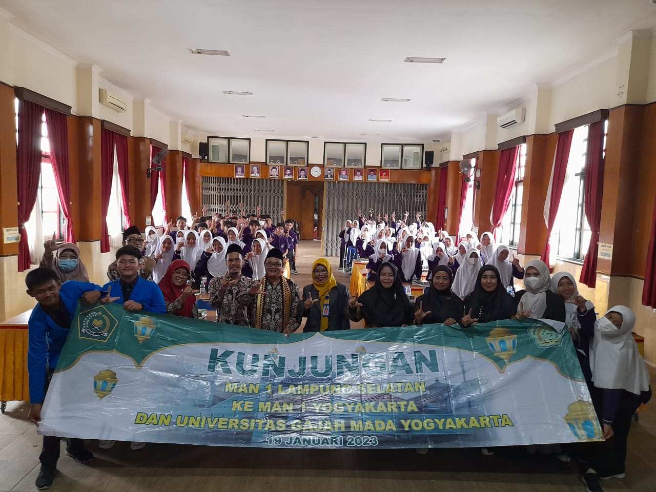 Yogyakarta (MAN 1 YK) — Sebanyak 85 orang civitas akademika dari MAN 1 Lampung Selatan melakukan kunjungan studi tiru di MAN 1 Yogyakarta, Rabu(18/1/2023), di Aula lantai 2.