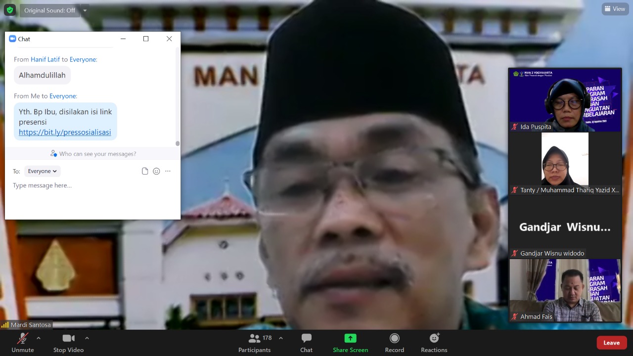Pada Sabtu (15/08/2021) digelar pertemuan orang tua/wali siswa, sosialisasi SKS untuk siswa kelas X, sharing dan penguatan SKS bagi Kelas XI. Materi SKS disampaikan oleh Wakaur Kurikulum Fajar Basuki Rahmat, S.Pd.I. Pertemuan dihadiri oleh Ketua Komite, Drs. H. Bun Yamin, M.Pd.I. Diawali dengan sambutan Kepala MAN 2 Yogyakarta, yang mengawali dengan ucapan terima kasih dan apresiasi tinggi kepada orang tua siswa, dilanjutkan sosialisasi SE Kemenag RI No.23 Tahun 2021.