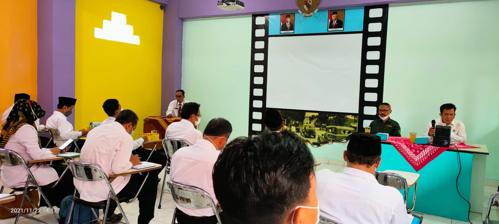 Yogyakarta (MAN 2 Yogyakarta) – Pada Senin (22/11/2021) MAN 2 Yogyakarta menjadi tuan rumah penyelenggaraan pertemuan pembinaan dan pengarahan oleh Dr. Suwardi, M.Si Kepala Seksi Kurikulum dan Evaluasi Direktorat Kurikulum Sarana Prasarana Kelembagaan dan Kesiswaan untuk madrasah penyelenggara SKS. Kegiatan ini diikuti oleh tujuh Kepala Madrasah, Wakaur Kurikulum, Wakaur Kesiswaan, dan Koordinator SKS.
