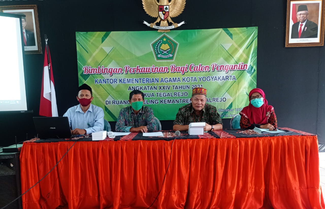 Yogyakarta (KUA Tegalrejo) – Kamis, (28/10), bertempat di Aula Pepeling Kemantren Tegalrejo dilaksanakan Bimbingan Perkawinan (Binwin Angkatan XXIV) hari ke 2 bagi Calon pengantin yang mendaftar atau menikah di bulan Oktober – Desember 2021 oleh KUA Tegalrejo Kementerian Agama Kota Yogyakarta.