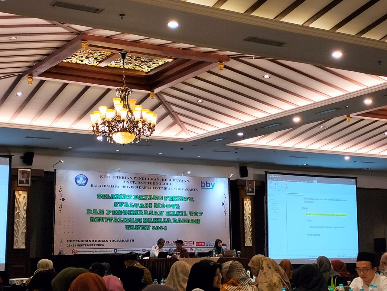 Yogyakarta — Sebagai bagian dari upaya pelestarian dan pengembangan bahasa daerah, kegiatan evaluasi modul dan pengimbasan revitalisasi bahasa daerah dilaksanakan pada tanggal 23-24 September 2024 di Hotel Grand Rohan, Yogyakarta ini. Acara ini dihadiri oleh berbagai peserta yang terdiri dari para pendidik dan pemerhati bahasa daerah termasuk perwakilan dari MIN 1 Yogyakarta.