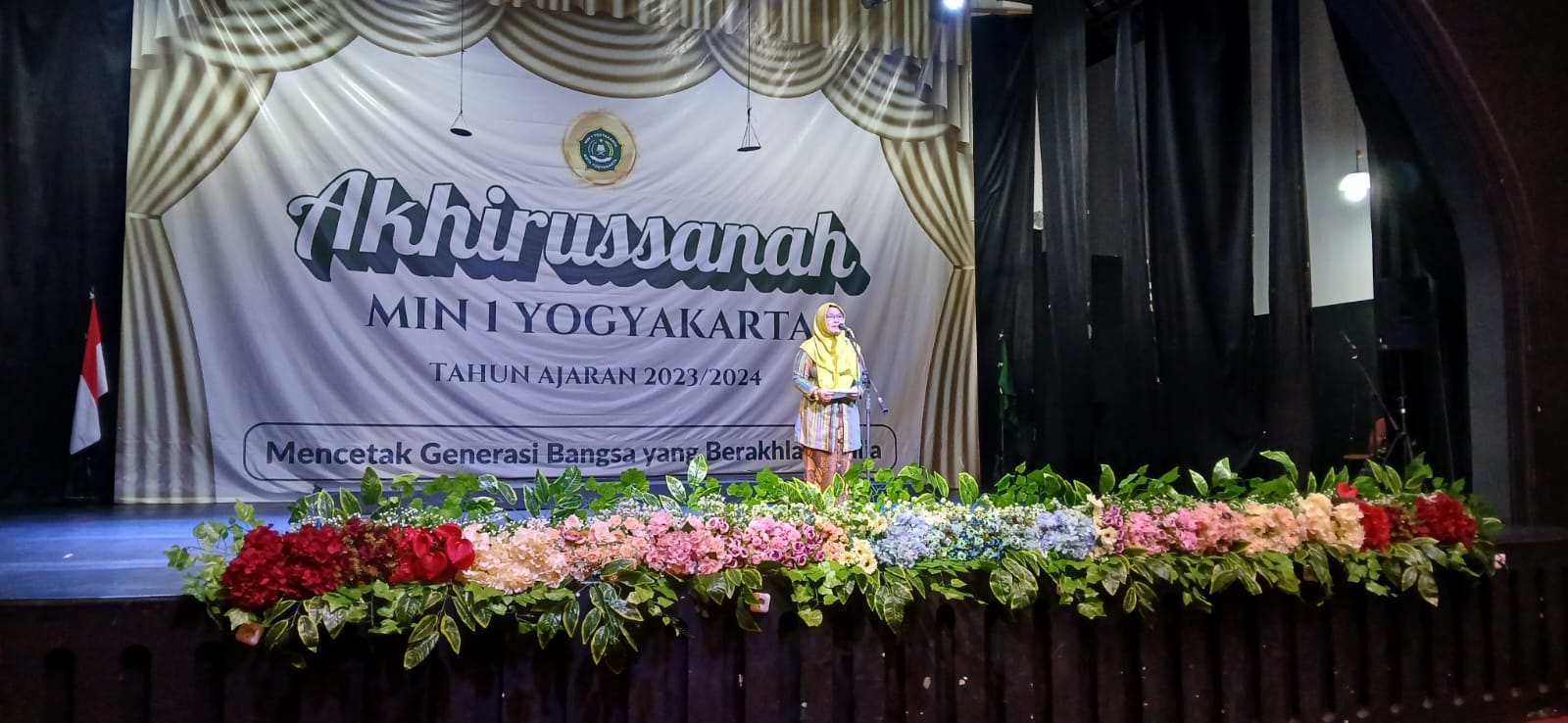 Yogyakarta (Humas)-Bertempat di Gedung Societeit Militaire Taman Budaya Yogyakarta pada Kamis 6/6/2024 MIN 1 Yogyakarta menyelenggarakan kegiatan akhirrusanah tahun 2024. Hadir dalam kegiatan tersebut Kepala Kantor Kementerian Agama Kota Yogyakarta H. Nadhif, S.Ag.,MSI., bersama Kasi Dikmad Hj. Elfa Tsuroya, S.Ag.M.Pd. serta Pengawas Madrasah Ratini, S.Pd.I.,MSI.