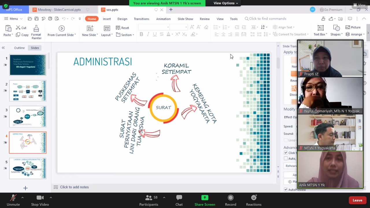 Yogyakarta (MTsN 1 Yogyakarta) – Menjelang Pembelajaran Tatap Muka Terbatas (PTMT), MTsN 1 Yogykarta mengadakan sosialisasi kepada siswa dan orang tua siswa melalui zoom meeting pada Rabu (29/09/2021). Berbagai persiapan untuk memenuhi syarat dibukanya PTMT telah dipersiapkan oleh Kepala Madrasah Drs. Muhammad Iriyadi dan segenap civitas akademika MTsN 1 Yogyakarta.
