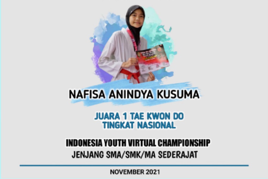 Yogyakarta (MAN1YK) — Setiap anak memiliki keunikan tersendiri, minat bakat yang melekat dalam diri setiap anak pun akan berbeda satu dengan lainnya. Minat bakat yang berbeda membuat anak memiliki prestasi yang berbeda-beda dan tidak hanya dibidang akademik saja. Seperti halnya salah satu siswi MAN 1 Yogyakarta, Nafisa Anindya Kusumo yang berhasil meraih juara dalam bidang Taekwondo. Nafi, begitu sapaan akrabnya, meraih juara 1 dalam Kejuaraan Indonesia Youth Championship 2021 tingkat nasional.
