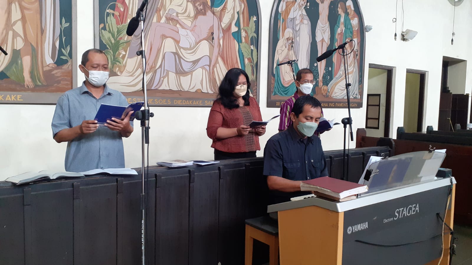 Misa yang diselenggarakan di Gereja St. Yusuf, Bintaran kali ini mengajak penyuluh agama Katolik untuk ikut andil dalam setiap tugas liturgis, salah satunya yaitu sebagai kelompok paduan suara koor yang mengiringi Misa Jumat Pertama, sehingga misa jumat pertama pada kesempatan ini terasa lebih khusuk dan skral. Penyuluh Agama Katolik Non-PNS Kota Yogyakarta. menyanyikan beberapa lagu pujian dengan sukacita, Disamping menjadi petugas liturgi Paguyuban pokjaluh juga bertugas sebagai satgas covid dengan mengarahkan umat yang masuk dan mengatur tempat duduk agar tidak terjadi kerumunan.