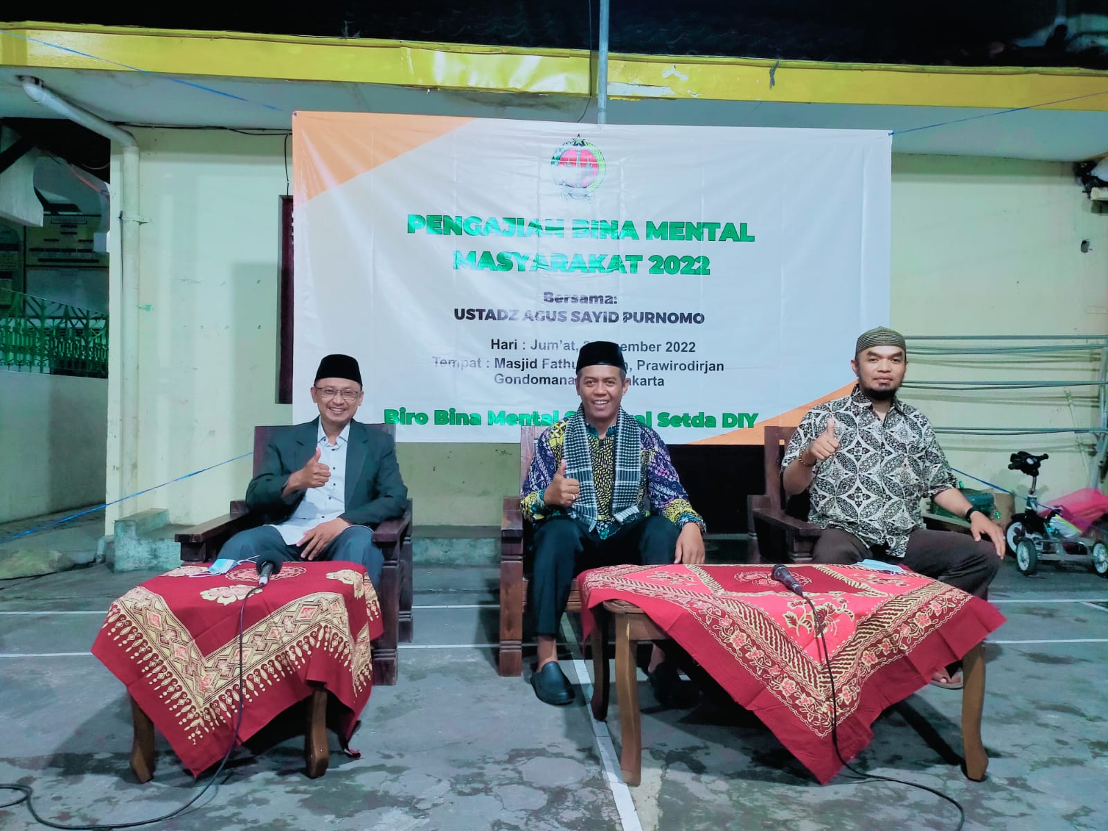 Yogyakarta (KUA Gondomanan) – Penyuluh Agama Islam Fungsional (PAIF) Kementerian Agama (Kemenag) Kota Yogyakarta, Eko Agus Wibowo, S. Sos. I., ikut ambil bagian dalam pengajian Biro Bina Mental Spiritul Setda DIY bersama Ustadz Sayid Agus Purnomo yang diselenggarakan bertempat di Masjid Fathul Bayan Prawirodirjan Gondomanan, Jum’at (2/12/2022).
