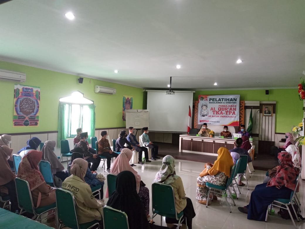 Yogyakarta (KUA Umbulharjo) Forum Komunikasi Penyuluh Agama Islam (FKPAI) Kemantren Umbulharjo berkerjasama dengan Pengurus Rayon Badko TPA menginisiasi penyegaran kegiatan TPA yang mengalami perlambatan serius di masa pandemi covid 19 dengan melaksanakan pelatihan manajemen dan Strategi Pembelajaran Al Quran TKA dan TPA Se Rayon Kemantren Umbulharjo. Sekretaris panitia Tri Antoro melaporkan, kegiatan ini dilaksanakan pada hari Sabtu ,Tanggal 12 Februari 2022 bertempat di Aula KUA Kecamatan Umbulharjo. Mengingat situasi pandemi yang masih belum kondusif, maka peserta untuk angkatan ini dibatasi, yaitu perwakilan dari 30 TPA.