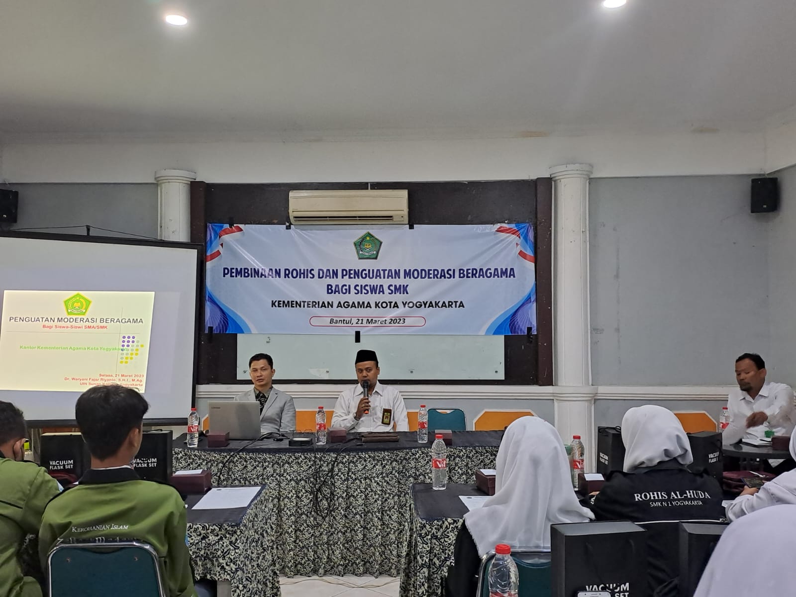 Yogyakarta (PAIS ) Bertempat di Goeboeg resto Jl. Wonosari KM 1 Banguntapan Bantul Seksi Pendidikan Agama Islam Kantor Kementerian Agama Kota Yogyakarta, hari Selasa tanggal 21 Maret 2023 mengadakan kegiatan “ Pembinaan Rohis dan Penguatan Moderasi Beragama untuk Siswa SMK ” dikuti oleh 30 siswa perwakilan ROHIS dari SMK Se kota Yogyakarta.