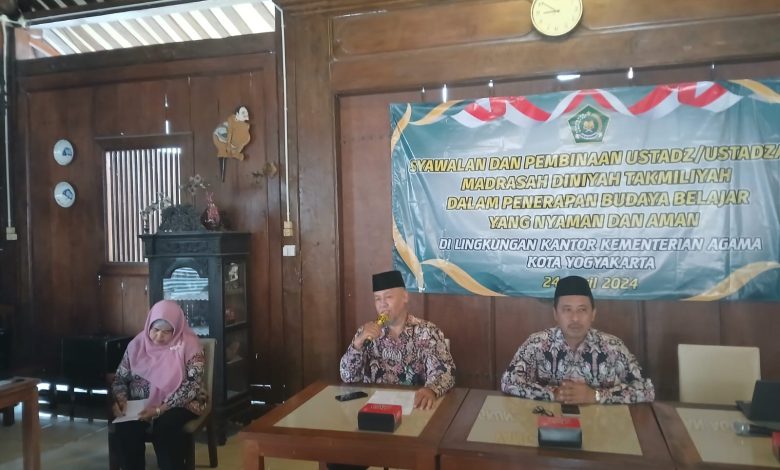 Yogyakarta (humas) – Ustadz dan ustadzah memiliki peran yang sangat penting dalam membentuk karakter santri/siswa agar memiliki sikap peduli terhadap lingkungan sehingga akan menciptakan kenyamanan dalam kehidupan sehari-hari. Karakter peduli lingkungan khususnya masalah sampah bukan hanya untuk saat ini, tetapi masa depan. Yogyakarta darurat sampah masih dirasakan hingga hari ini. Upaya pemerintah dan masyarakat sudah dilakukan untuk dapat menyelesaikan darurat sampah di Kota Yogyakarta. Demikian sambutan Kepala Seksi PD Pontren Kankemenag Kota Yogyakarta H. Arif Harjanto, SH dalam acara Syawalan dan Pembinaaan Ustadz/Ustadzah Madrasah Diniyah Takmiliyah Dalam Penerapan Budaya Belajar Yang Nyaman dan Aman. Kegiatan tersebut diselenggarakan pada Rabu, 24/04/2024 di RM Kebon Ndelik Bausasran Yogyakarta.