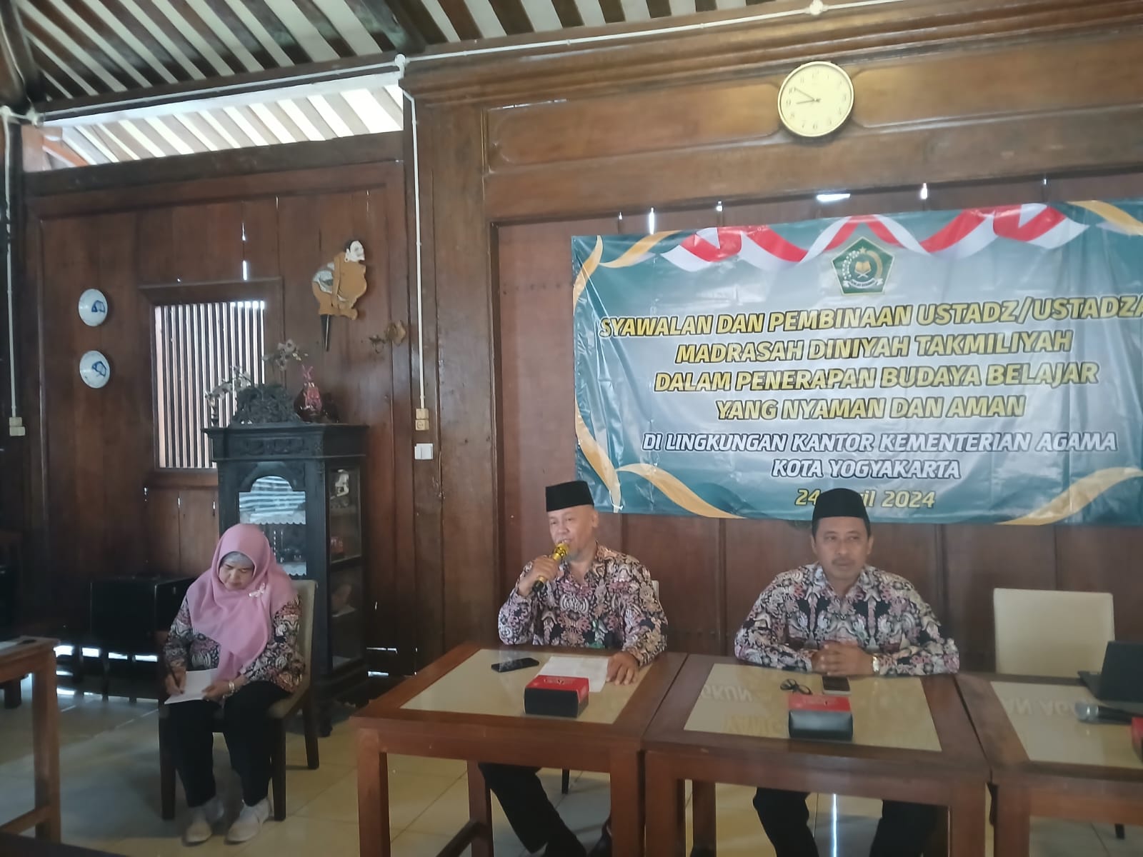 Yogyakarta (humas) – Ustadz dan ustadzah memiliki peran yang sangat penting dalam membentuk karakter santri/siswa agar memiliki sikap peduli terhadap lingkungan sehingga akan menciptakan kenyamanan dalam kehidupan sehari-hari. Karakter peduli lingkungan khususnya masalah sampah bukan hanya untuk saat ini, tetapi masa depan. Yogyakarta darurat sampah masih dirasakan hingga hari ini. Upaya pemerintah dan masyarakat sudah dilakukan untuk dapat menyelesaikan darurat sampah di Kota Yogyakarta. Demikian sambutan Kepala Seksi PD Pontren Kankemenag Kota Yogyakarta H. Arif Harjanto, SH dalam acara Syawalan dan Pembinaaan Ustadz/Ustadzah Madrasah Diniyah Takmiliyah Dalam Penerapan Budaya Belajar Yang Nyaman dan Aman. Kegiatan tersebut diselenggarakan pada Rabu, 24/04/2024 di RM Kebon Ndelik Bausasran Yogyakarta.