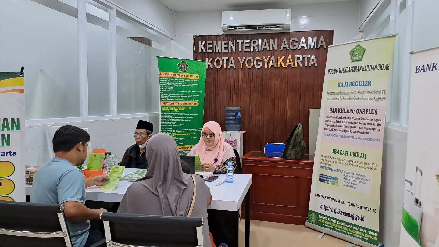 Yogyakarta(KUA Ngampilan) Penyuluh Ngampilan, Janti Ristiani,S.Ag, bersama Penghulu Kotagede,KRT Muklis, kompak melayani tamu yang hadir di Mall Pelayanan Publik Kementerian Agama Kota Yogyakarta dalam rangka konsultasi dan mencari informasi tentang haji, pada hari Jumat,26/07/2024.Syarat-syarat pendaftaran haji sudah disediakan pamflet yang bisa dibaca dan dibawa serta penjelasan mengenai seputar haji dilayani dengan baik.Topik ynag sering ditanyakan adalah haji dan pernikahan.Dalam hal ini sudah tepat bahwa Penghulu dan Penyuluh dijadwalkan bertugas di MPP.Masyarakat bisa mendapatkan informasi yang diharapkan.Disamping informasi Haji dan pernikahan ada lagi pelayanan produk halal,konsultasi keluarga,zakat,wakaf ,waris dan lain sebagainya.(Janti)