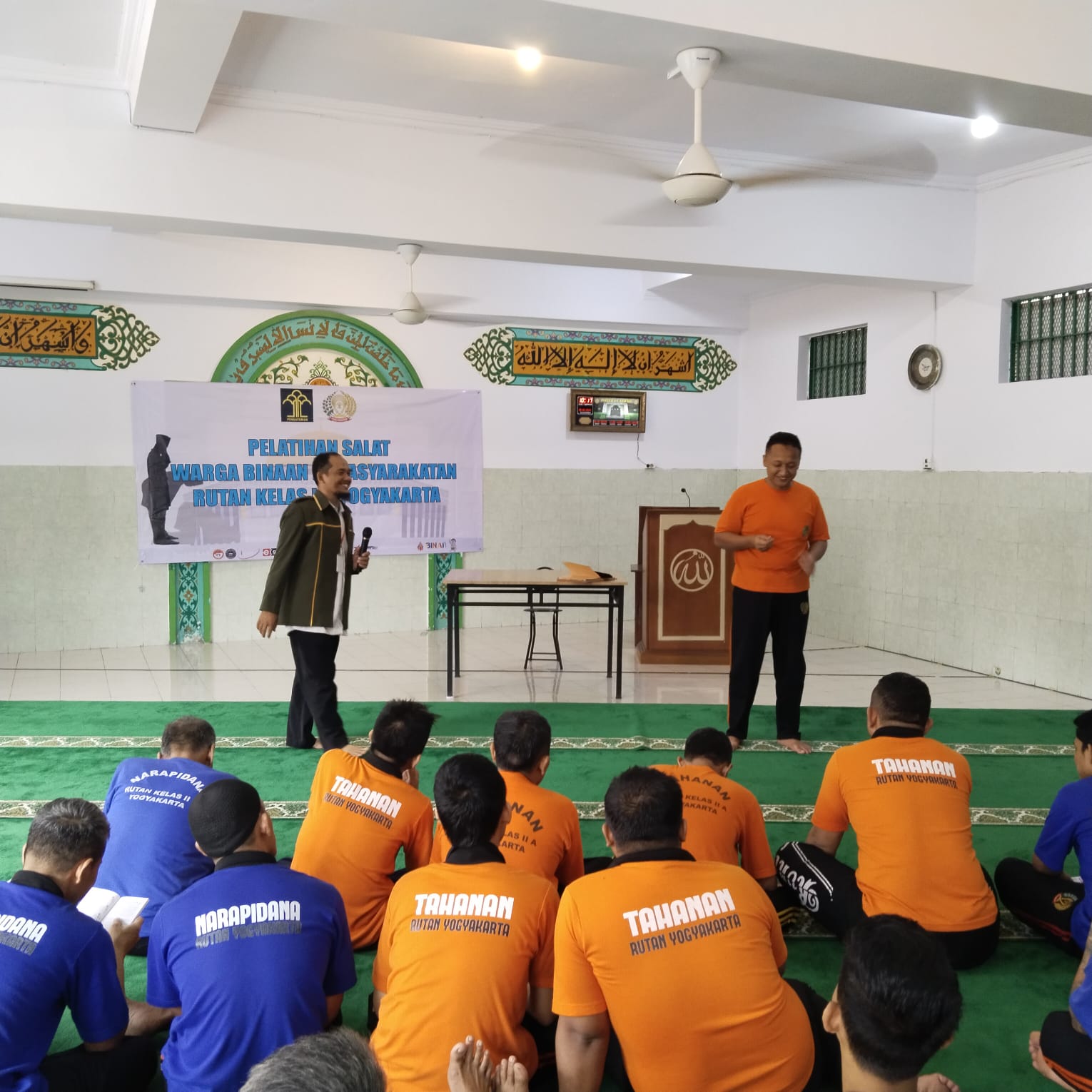 Yogyakarta (KUA Gondokusuman) Penyuluh Agama Islam Kemenag Kota Yogyakarta, Eko Agus Wibowo, S. Sos. I., memberikan pelatihan tata cara shalat sesuai dengan Al-Qur’an dan Sunnah di Masjid At Taqwa Rutan Klas IIA Yogyakarta, Selasa, 28 Mei 2024