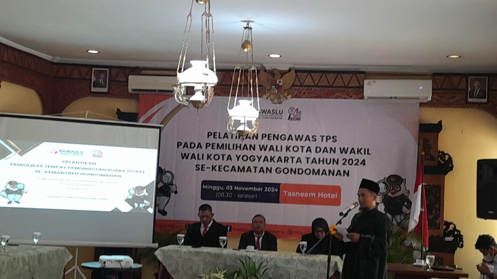 Mantri Pamong Praja dalam sambutannya berpesan agar Pengawas TPS dalam menjalankan tugas berintegritas, Netral dan mengetahui terkait regulasi dan aturan-aturan dalam pemilihan Walikota dan Wakil Walikota Yogyakarta agar mendapatkan pemimpin yang diharapkan oleh masyarakat Kota Yogyakarta lima tahun kedepan.