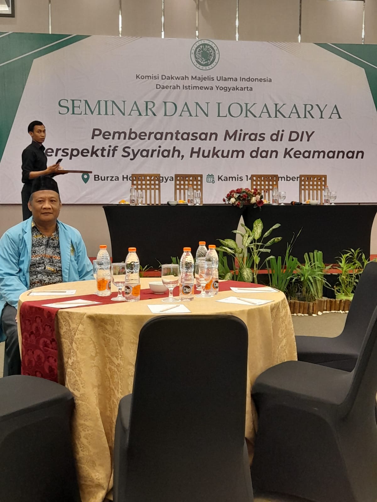 Suhartanto, S. Ag. Penyuluh Agama Islam Fungsional Ngampilan , menghadiri Acara Semiloka, tentang pembrantasan miras di DIY, prespektif Syariah, Hukum, dan keamanan di Bursa Hotel Jogokariyan, Yogyakarta, pada Kamis, 14 November 2024.