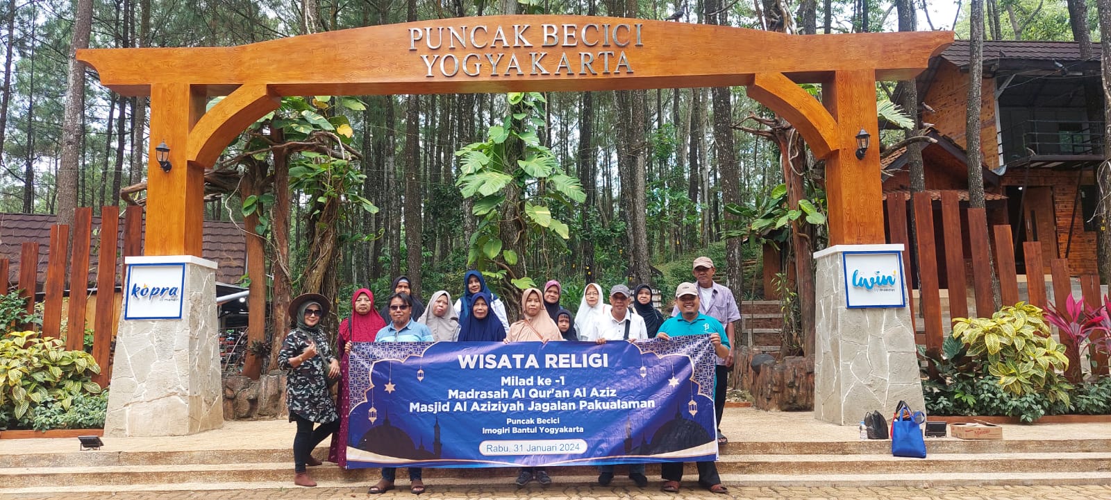 Yogyakarta (KUA Pakualaman) Penyuluh Agama Islam KUA Pakualaman laksanakan pendampingan dalam acara Milad ke – 1 Madrasah al qur’an Al Aziz hari Rabu, 31 Januari 2024. Acara Milad yang dikemas dalam bentuk wisata religi kali ini bertempat di wisata Puncak Becici Bantul Yogyakarta dan dikuti oleh semua jamaah Madrasah Al Qur’an. N. Sholihat, S.Ag. MA. Penyuluh Agama Islam KUA Pakualaman saat membuka acara tersebut mengatakan bahwa acara wisata religi ini bertujuan untuk penyegaran dan memberikan semangat kepada jamaah Madrasah Al qur’an untuk terus belajar al qur’an. Dikatakan pula agar dengan acara wisata religi ini semakin bertambah masyarakat yang mengikuti Madrasah Al qur’an Al Aziz. Madrasah al qur’an Al Aziz merupakan salah satu kelompok binaan Penyuluh Agama Islam KUA Pakualaman yang fokus pada bimbingan baca al qur’an dan kajian tematik al qur’an.