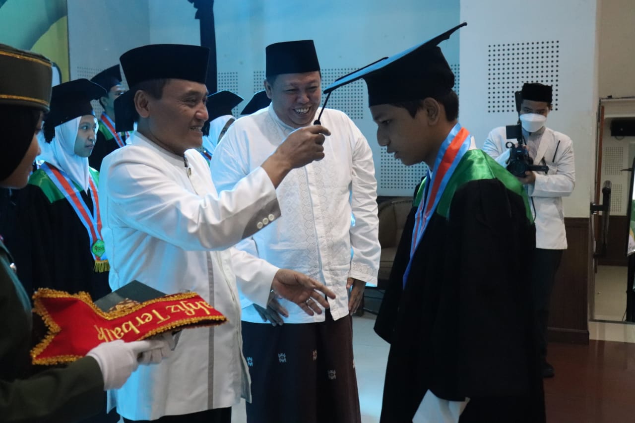 ”Seorang anak penghafal Al Quran adalah anugerah dan rizki yang luar biasa bagi orang tua. Tetaplah istiqomah dan jadi anak yang baik serta berbakti kepada orang tua. Semoga hafalan yang kalian miliki dapat mengantar diri kalian beserta orang tua kalian ke dalam surga Allah SWT.” pintanya.