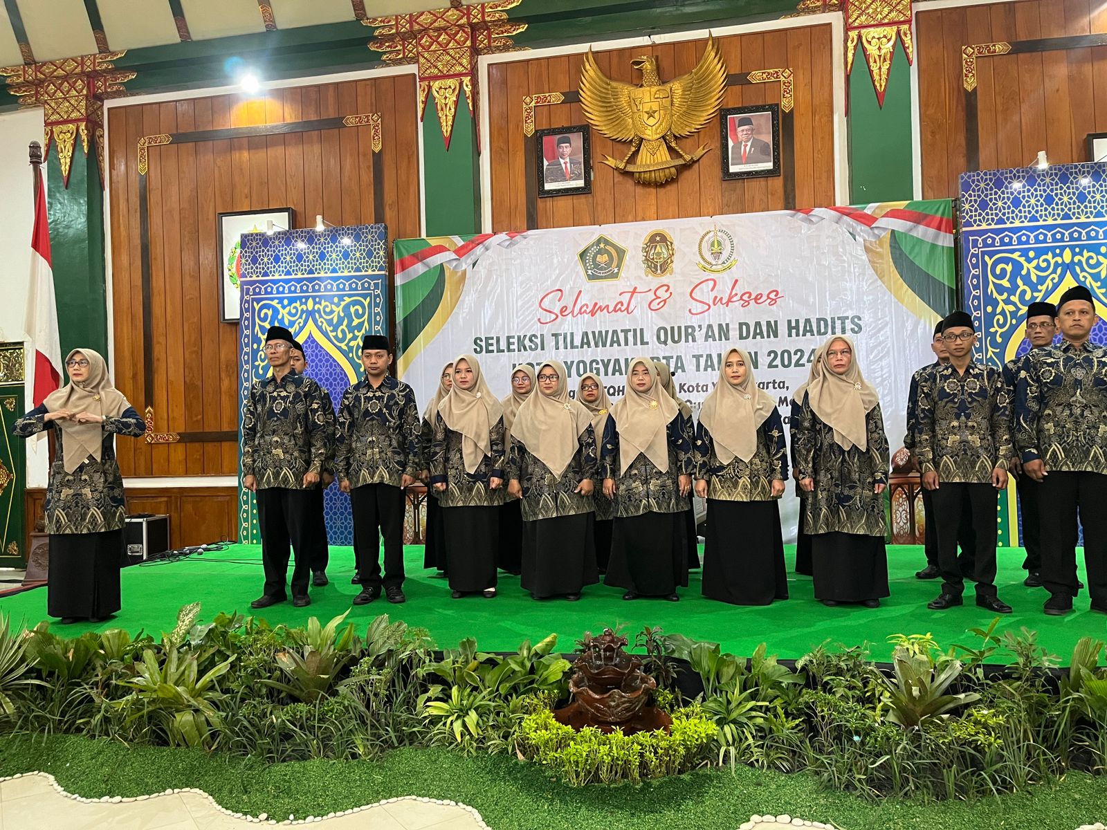 Paduan Suara Kelompok Kerja (Pokjaluh) Kantor Kementerian Agama Kota Yogyakarta tampil pada saat pembukaan Seleksi Tilawatil Qur’an dan Hadits Tingkat Kota Yogyakarta pada hari Sabtu, 10 Agustus 2024 di Graha Pandawa Komplek Balaikota Yogyakarta.