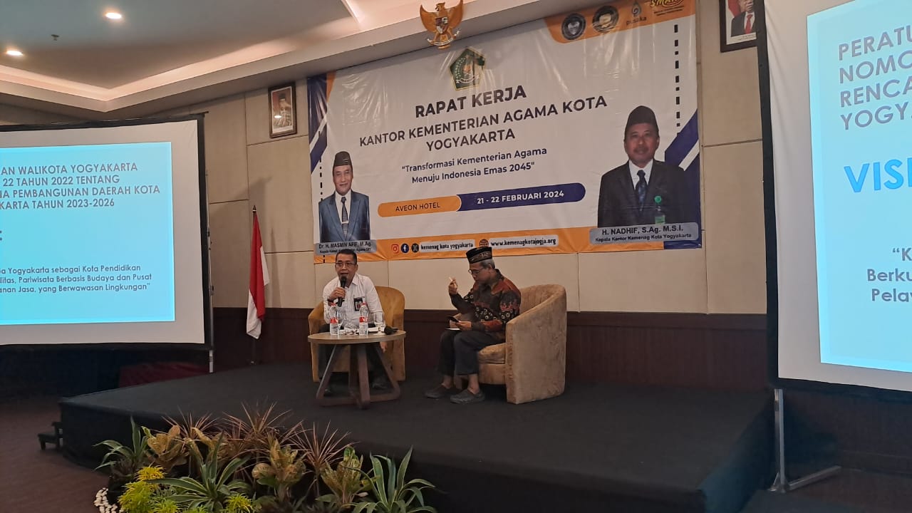 Sleman (Humas) – Asisten Pemerintahan dan Kesejahteraan Rakyat (Aspemkesra) Kota Yogyakarta Drs. Yunianto Dwi Sutono menjadi narasumber dalam rapat kerja (Raker) Kantor Kementerian Agama Kota Yogyakarta. Kegiatan berlangsungi di Hotel Aveon, Rabu-Kamis (21-22/2/2024). Mengangkat tema fasilitas keagamaan pemerintah Kota Yogyakarta melalui bagian kesejahteraan Setda Kota Yogyakarta.
