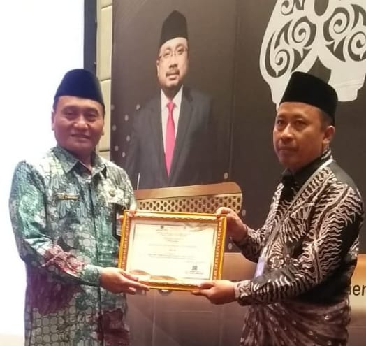 Penghargaan diserahkan Kepala Kantor Wilayah Kemenag DIY, Dr. H. Masmin Afif, M.Ag pada rangkaian Rakerwil 2024, yang berlangsung Kamis-Sabtu, (15-17 /02/ 2024) di Hotel Grand Dafam Signature Internasional Airport Kulon Progo.