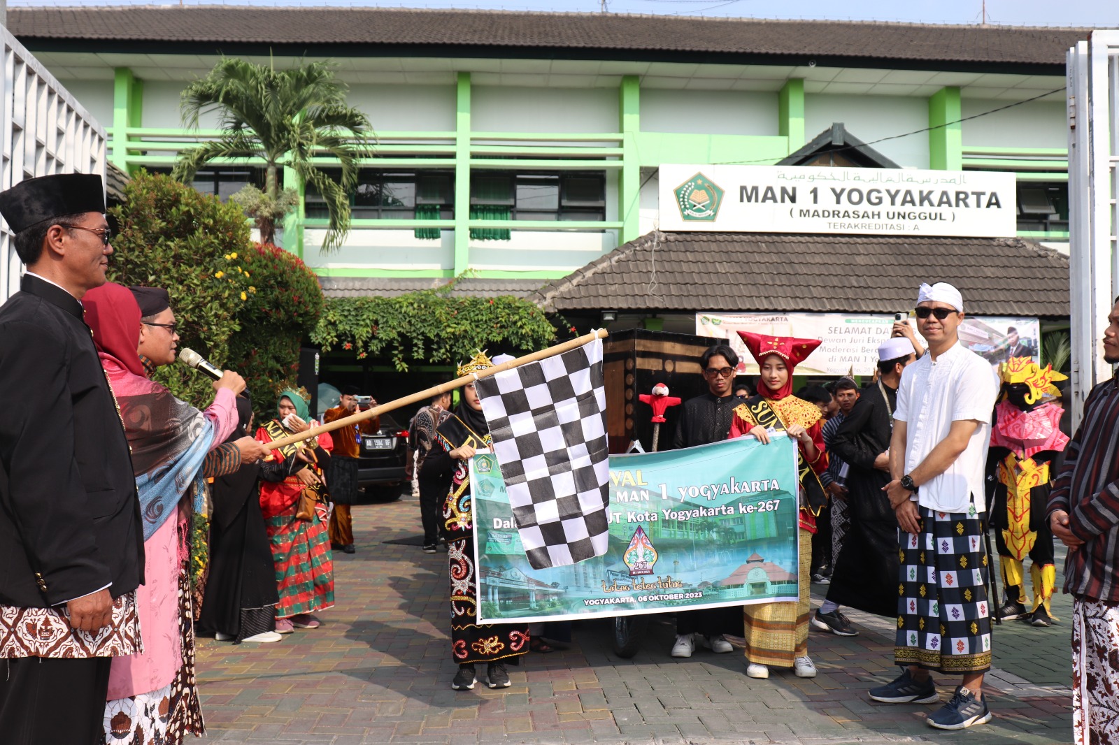 Yogyakarta (MAN 1 YK) – MAN 1 Yogyakarta menggelar karnaval pada Jumat, (06/10/23) sebagai wujud peringatan Hari Ulang Tahun (HUT) Kota Yogyakarta ke- 267. Kegiatan tersebut diikuti oleh seluruh civitas MAN 1 Yogyakarta. Peringatan HUT tersebut ditujukan untuk mengenang sejarah perjalanan Kota Yogyakarta.