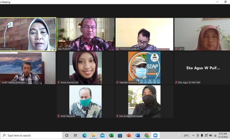 Yogyakarta (Kemenag Kota) – Dalam rangka mempertahankan predikat Wilayah Birokrasi Bersih Melayani (WBBM), Sabtu (12/03/2022) Kantor Kementerian Agama Kota Yogyakarta menyelenggarakan rapat koordinasi penyusunan rencana kerja pembangunan Zona Integritas (ZI) Kantor Kemenag Kota Yogyakarta tahun 2022. Rakor dipimpin Kasub. Bagian TU Dra. Hj. Noor Imanah, MSI diikuti tim ZI melalui zoom meeting.