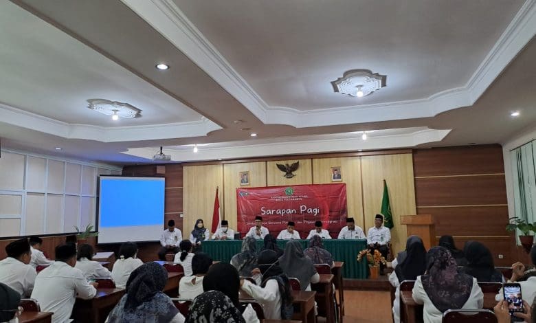 Yogyakarta (Humas) – Kantor Kementerian Agama Kota Yogyakarta menggelar Sambung Rasa Pegawai dan Pimpinan Terintegrasi (Sarapan Pagi), Senin (11/9/2023). Kegiatan sarapan pagi yang bukan sekadar rutinitas, melainkan juga sebagai ajang bersama pimpinan dan pegawai untuk berbagi pandangan, sekaligus menyerap aspirasi dari seluruh pegawai untuk perbaikan kinerja institusi.